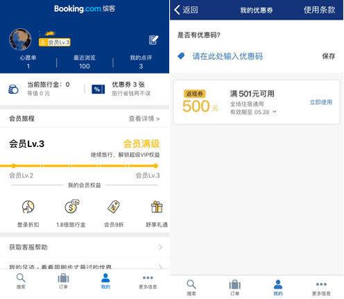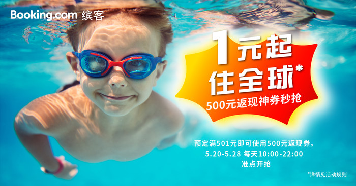 1.1元起闪购,booking App 上就会发放1张价值500元的神券,只要预定满501元就可以使用!活动期间,每天早上10点开抢!