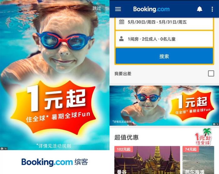 打开booking App, 点击弹屏或者或打开booking App 点击首页活动。