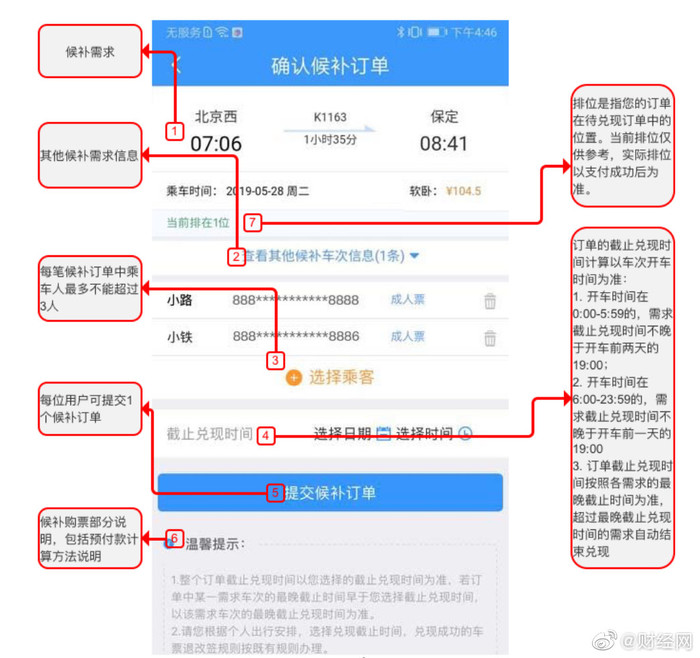 @财经网:据@中国铁路,从5月22日起,12306网站在前期试点的基础上,将铁路候补购票服务扩大到所有旅客列车。“候补购票”功能全免费,成功率优于抢票软件。候补购票服务是指在通过12306网站和APP购票时,如遇所需车次、席别无票,可自愿提交购票需求,售票系统自动排队候补,当有退票时,系统自动兑现车票,并将购票结果通知购票人。