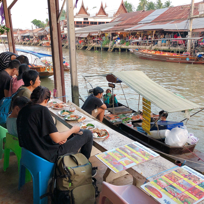 整个安帕瓦市场特别大,慢慢走慢慢逛,真的很有趣,非常建议坐下这边的船,绕着整个水上市场游一圈~大约半小时,迎着风,放松心情,真的非常舒适!!在这里你会看到非常多泰国的美食,包括当地泰国人小时候吃的零食,买来尝一尝更能体会到当地的风土人情~