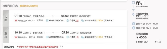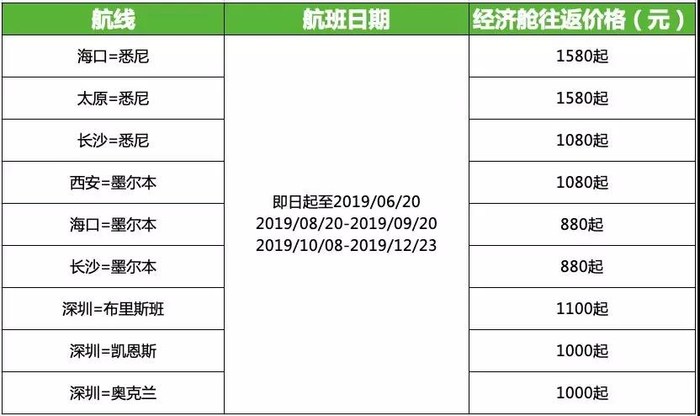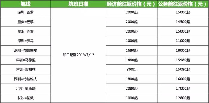 航班日期:即日起-2019.7.12