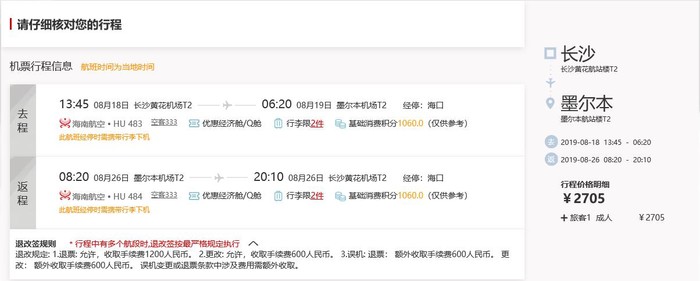 长沙=墨尔本,往返含税2.7k,还带两件行李,OTA上查到的同班期其他航司基本都是三四千,相比较就是便宜了一千!