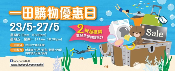香港一田购物优惠日,5月23日-27日(沙田店)