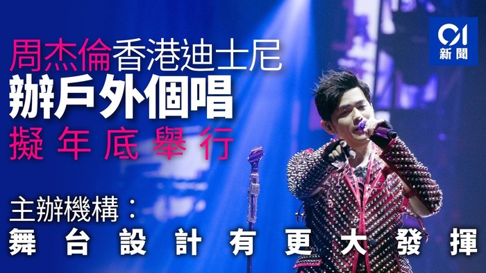 @香港01新闻:周杰伦的歌迷留意,今年底将可欣赏到偶像的首个本港户外演唱会。主办单位向《香港01》证实,台湾歌手周杰伦将于今年底于迪士尼幻想道露天场地举办演唱会,成为第三名使用该场地的歌手,迪士尼成为开演唱会地方逐渐成形。
