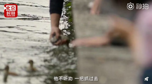 @新浪新闻客户端:5月18日,杭州西湖,一名男游客趴在白堤岸边,用手抓两只游到岸边的小鸳鸯。志愿者女孩拼命劝阻男子 ,但对方并未理会,自称拿来玩玩。男子把其中一只鸳鸯抓出水面,另外一只明显受到惊吓。志愿者老潘称被游客抓过的两只鸳鸯已确定夭折。