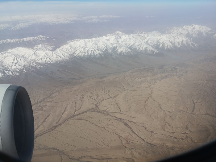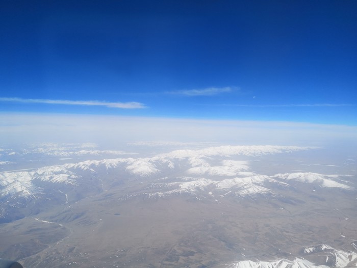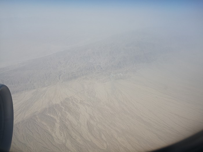 作为一个浙江人,从空中一望无际了无人烟的景象,还是如此清晰的看到实在震撼。而且一路飞过,各种地貌不断呈现,荒山、雪山、云海、戈壁、干涸的河床、沙漠,城市与沙漠咫尺之遥,在如此的土地上建立一个城市,还有那些零星的小村落,还有那些为了各种事业而建的聚居点,旅游是愉快的,但是生活非常不易。