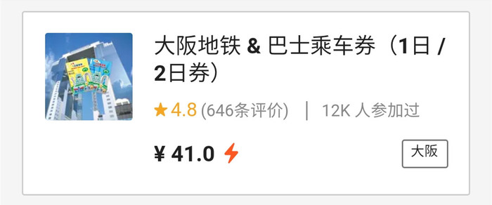 大阪周游卡(2日券)也参与了此次活动,打完折更划算!现KLOOK优惠价208元,日本官网售价3600日元(约合人民币227元),再叠加88折优惠,直接省了44元!