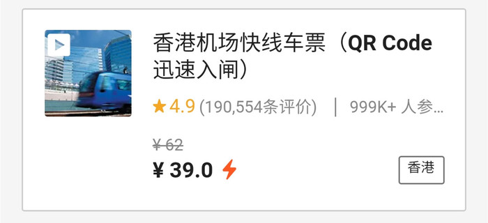 香港机场快线车票
