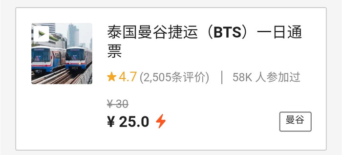 泰国曼谷捷运(BTS)一日通票