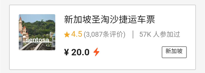 新加坡圣淘沙捷运车票