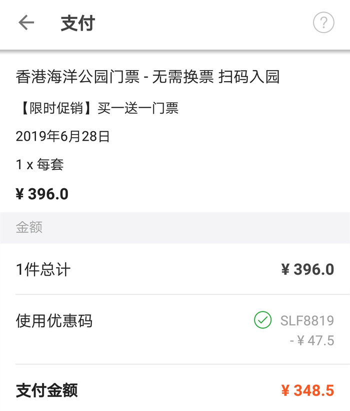 针对内地居民,现在有一个限时买一送一的活动,花396元就能买到两张票!注意,这个可以叠加88折优惠券,终于价格只要349元,算下来人均175元!