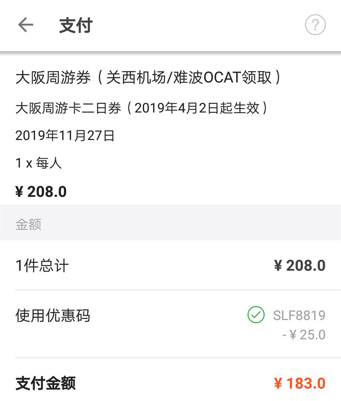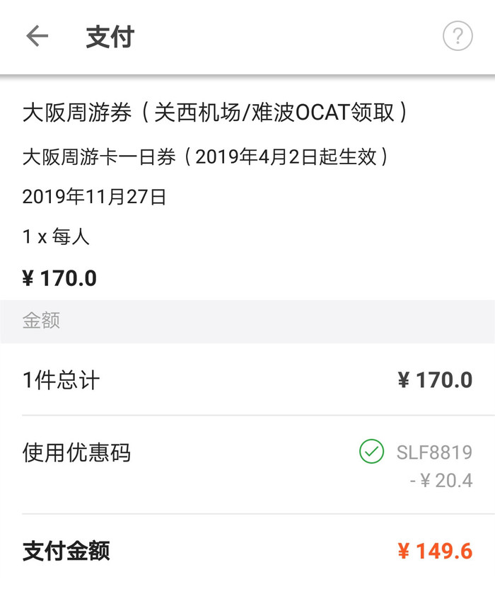大阪周游卡(1日券)日本官网售价2700日元(约合人民币170元),虽然KLOOK上价格跟官网上无差异,但是朋友们,现在有88折优惠呀!打完折下来,150元,直接省了20元!所以小番叫你们别老是犹豫,因为是真的划算呀!