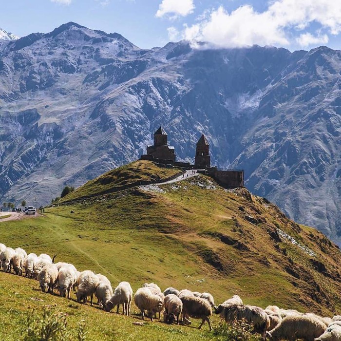 这里乃格鲁吉亚的名片,教堂孤零零的矗立在远处的山头上,那么的孤独,又是那么的虔诚。