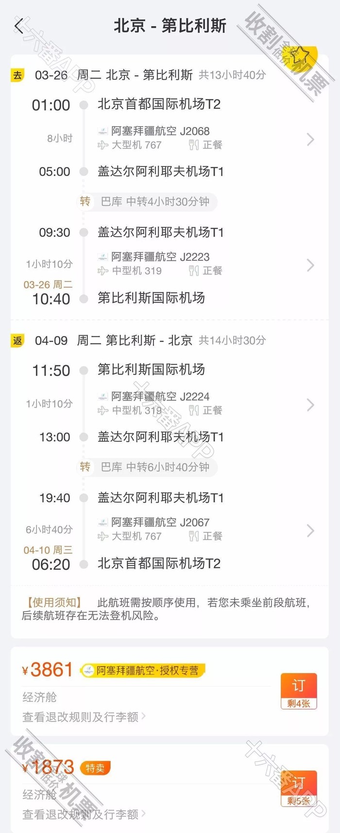 北京=第比利斯,含税1K8往返,阿塞拜疆航空执飞