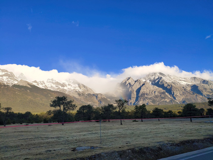 提前和橙橙订了 玉龙雪山 一日游,所以早上九点司机师傅就会来客栈接我们 到 丽江 旅行, 玉龙雪山还是非常值得去的!随着全球气候变暖,常年积雪的 玉龙雪山 未来可能再也无法看到积雪的盛景了!想看的美景一定要趁早 行程里的费用包括了(往返车费,进山费,大索道,景区车,氧气,外套,午饭)全部计算进去了,比较省心路中偶遇彩虹,幸运的从彩虹的这一边经过另外一边。听司机师傅说,他在这边载客这么久了,还没遇到过彩虹。