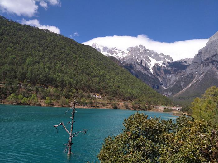 湖边臭美一张,很多人在附近拍摄。湖水和雪山相映。那天天气很好,太阳暴晒啊,居然有点热,我都好奇为啥山顶的雪不会化。