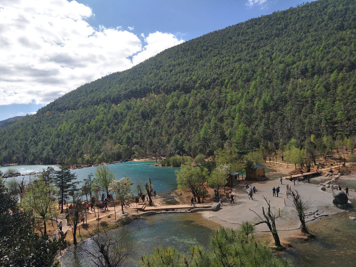 上午的行程很简单,游览蓝月湖。 玉龙雪山 的旅游区建设的还可以,来回都是免费的旅游大巴接送的。我们到达 玉龙雪山 的时候,是第一批客人。先去了蓝月湖。说是蓝月湖,其实感觉是很多个湖,景色很美。