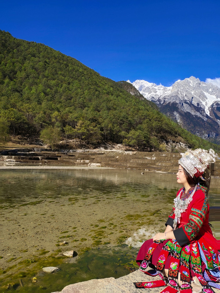 蓝月湖旁边有些许小商铺,有租民族服装的,价格很亲民,20块无需押金可以不限时间拍摄。