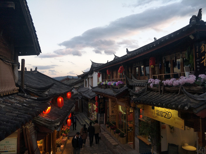 晚上七点多到达的 丽江 古镇,因为太累了,都没有出去玩直接洗了澡去吃了东西就回来了。晚上的 丽江 古镇不是很多人,可能刚好我们住的这一边没什么人吧。