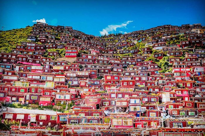 第二天早上八点,起床出发,今天的目的地 色达 。其实很早在网上看了关于佛学院的照片,但当我真正到了那里,还是震惊了一下。颜色的冲击力很强。