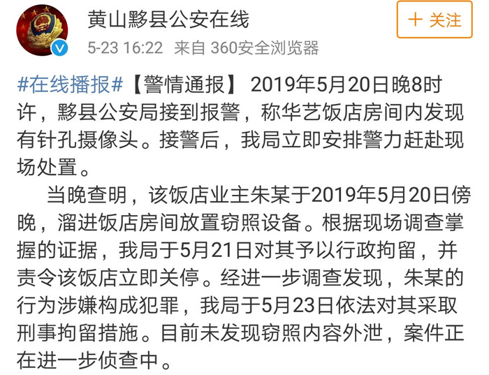 记者致电黄山市黟县公安局,一名工作人员表示,警方已就此事立案调查。