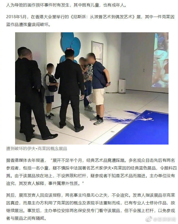 @澎湃新闻:香港佳士得春拍正在进行,然而在5月26日预展期间,一幅估价150-250万港元的任伯年《花鸟四屏》画作遭到幼童意外撕毁。原定于5月28日拍卖的该作已被撤下。佳士得香港公关部回应澎湃新闻表示:就拍品编号1393任颐《花鸟四屏》于展览期间遭到意外损坏一事,佳士得香港已通知委托方,并已撤拍该拍品。但对于澎湃新闻提出的肇事者及其监护人责任认定,拍品有无保险,以及对于拍品委托方如何善后,并未给出回应。近年来,人为导致的画作损坏事件时有发生,其中既有儿童,也有成年人…