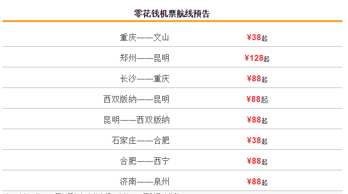 西部航空的零花钱机票,38元、88元、128元的国内特价机票周三上午10点准时开抢!