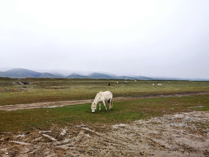 买了门票进入可鲁克湖-托素湖景区后发现,这里只能在可鲁克湖的一角转悠一下下,问了下工作人员才知道,前往两个湖的中央以及附近的外星人遗址景区需要从走另一条路,但是现在路被水冲垮了,所以无法通行。没办法,只能略微参观下,直接前往下一个地点了。