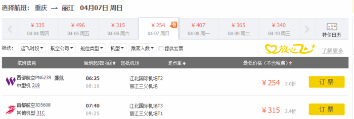 告诉大家一个窍门,重庆丽江这条航线,祥鹏航空也有促销,含税价格一般138元。祥鹏航空和西部航空每次秒杀都只能买一张票。