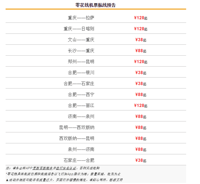 西部航空的零花钱机票,38元、88元、128元的国内特价机票周三上午10点准时开抢!