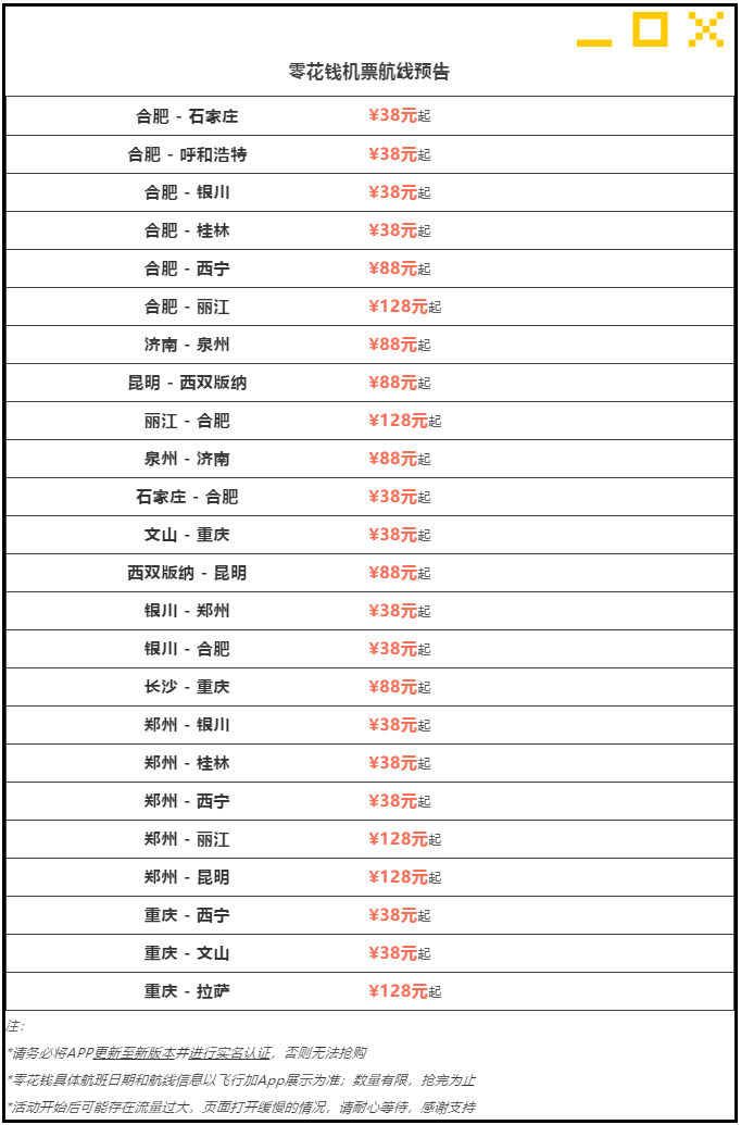 西部航空的零花钱机票,38元、88元、128元的国内特价机票周三上午10点准时开抢!