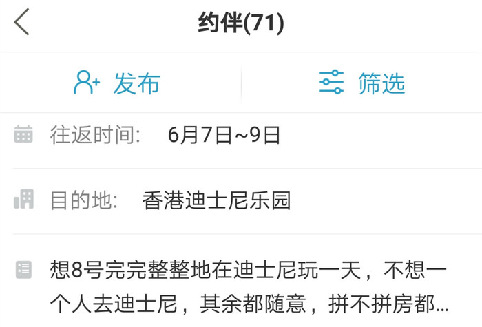 要是一个人去香港或者想多几个人热闹热闹,不妨来十六番APP上约个伴呀~在各大应用市场搜索“十六番旅行”或者点击阅读原文下载,即可发布约伴信息。