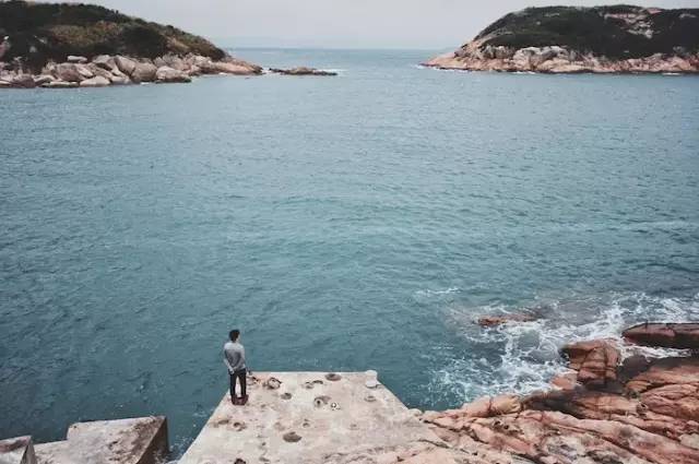 它最好的一天游玩法是从码头左侧开始,穿过荒村,以及偶尔有点烟火气的小道,一步一步,围绕着草丛中的石头岛,踏上高峰,吹着咸咸的海风,再一步步走下来。途中,你会登上牛湖顶,远眺港岛的群山与海。然后,沿着梯级,慢慢走下来,看惊艳的风景,观海角尽头的灯塔和佛手岩。