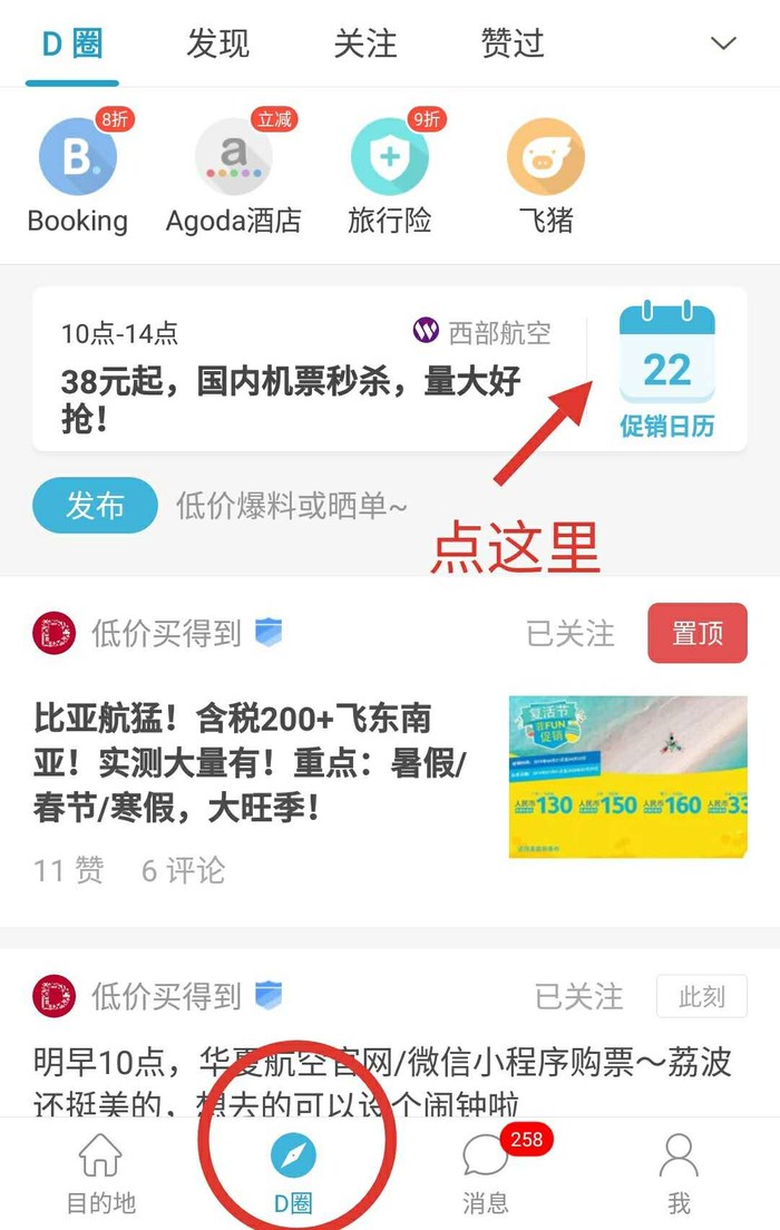 想买到便宜的机票,大家可以关注D圈、促销日历,在里边能看到近期所有机票促销!