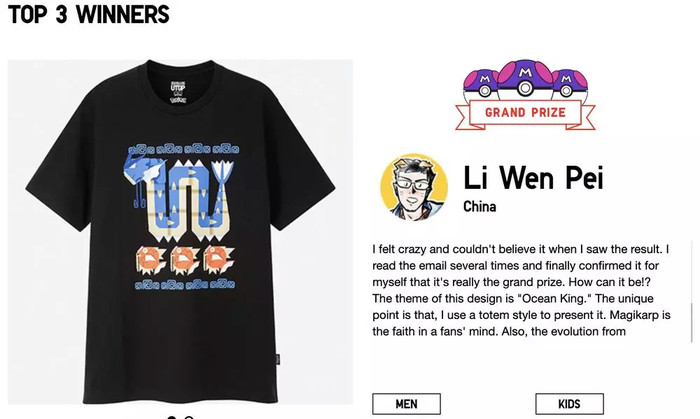 本次优衣库从18000位参与者当中选了20多款短袖,而第一名的则是一位中国地区的设计师设计,不过由于获奖作品违反了参赛规定(该作者早期将设计的衣服放在淘宝上售卖),因此官方将停止该款商品的销售计划。