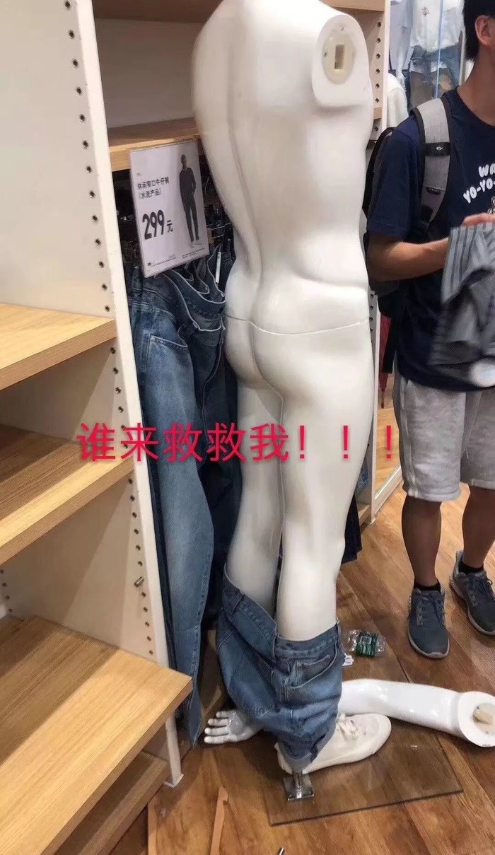 模特的手臂被拆掉,裤子也被扒下,整个店里就像被“打劫”过一般...