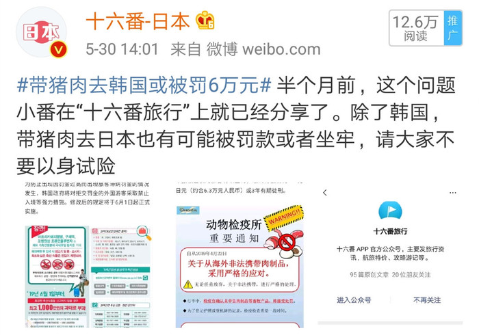 其实关于不要携带违禁猪肉制品入境韩国相关信息,小番也曾多渠道告知大家。首先是微信: