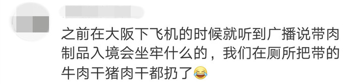 还有番友留言称一下飞机就听到广播说携带(违禁)肉制品入境会受到处罚。