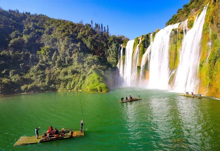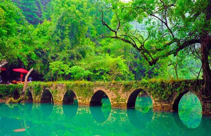 早餐后,我们前往贵州最南端“世界自然遗产地”荔波【小七孔】(车程约40分钟),这里被誉为“地球上的绿宝石”与“喀斯特地貌上的奇迹”。最为奇特的是这里的水,就如同“绿宝石”一样的幽美。一路过来,美景目不暇接,【小七孔古石桥】、【拉雅瀑布】、【六十八级瀑布】、【水上深林】、【卧龙潭】等,值得推荐的是,一定要重点体验一下一般人不重视的【鸳鸯湖】,因为这里是【小七孔】看水的精髓所在。在天然的碧蓝湖面上泛舟,穿梭在神秘的水上迷宫。突然发现,小七孔的美,除了看,还可以这么玩。