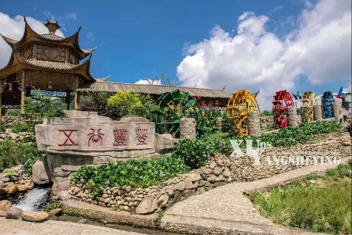 上午游览培斜村乡村旅游景点:大风车、溪流漫步、五谷丰登等[五色水车];