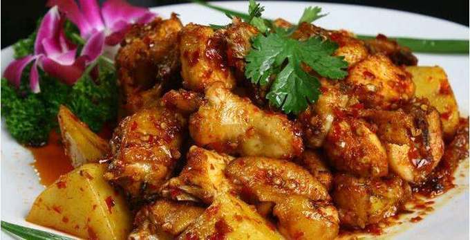 丽江 盛产土豆, 这个地方更是,如是出了这样一道有名的 洋芋煮鸡。土豆煮得粉粉的但是不烂,加上鸡汤的鲜味,一整块夹到碗里弄碎,拌上这边的蘸水,吃起来很是美味,鸡就没有什么好说的,一只整鸡切碎,和一大锅的土豆一起煮炖,别有一番风味。如果是 广州 或是不喜欢吃辣的地方地来,一定要和店家说好不说放辣和红油,不然上来一锅全是一层红油和厚厚的辣子,喜欢清淡会感觉味太重不好吃。只有二家店吃这个最正宗,一个是 象山 市场转盘处的 洋芋鸡总店,另一家是在 的 洋芋鸡分店,二家店相隔距离不远,从古城打的过去基本是7块左右。