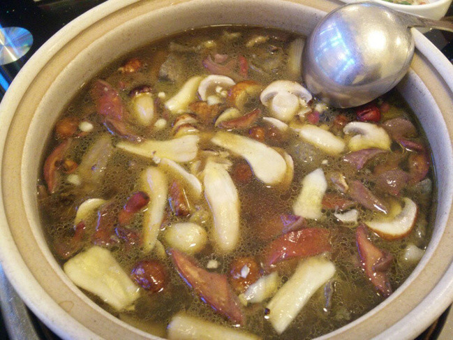 松茸是 云南 特产的一种珍贵的菌,有一种极为特别的香味,令许多人爱不释口,遇到7-9月新鲜的松茸上市时,在饭店点一盘松茸,不加任何东西炒光加点肉片炒就极香极好吃了,买回去一些干松茸炖鸡更是一道极佳的珍品美味。同样好吃的还有牛肝菌、鸡棕菌、牛肝菌、青头菌等等。 丽江 吃野生菌的地方推荐 新城 的东巴谷野生菌,号称采用多年的 玉龙雪山 的泉水、高原雪山的虫草、秘不可传的46种野生菌通过12小时文火煮炖而成,质量和味道相当的好,当然,这里价格不菲,去前可得想好哦