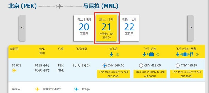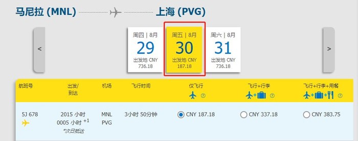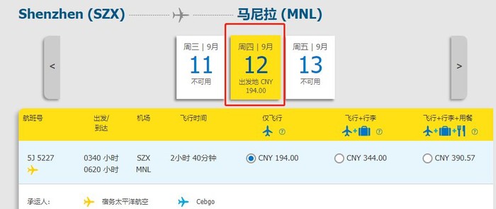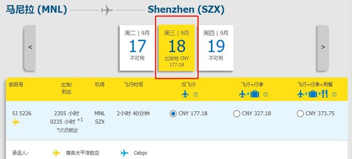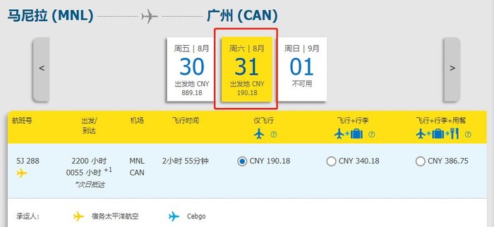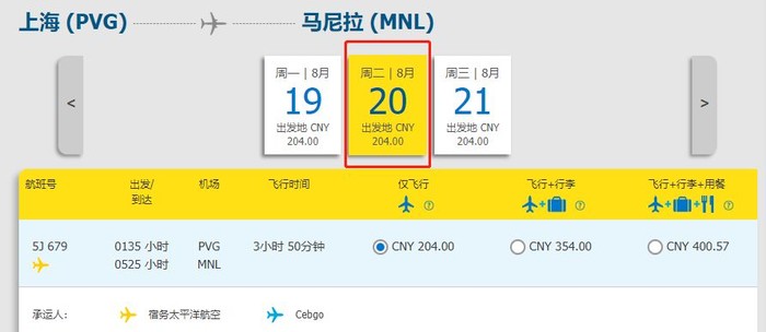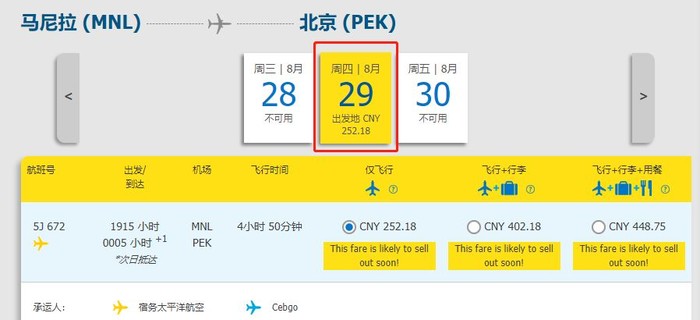 购票渠道:宿务太平洋航空官网https://book.cebupacificair.com/Flight/Select、APP