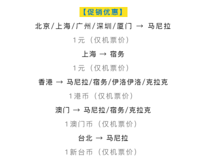 此外,马尼拉出发菲律宾国内航线、菲律宾往返日本,迪拜、澳洲、东南亚等其他城市也会促销,