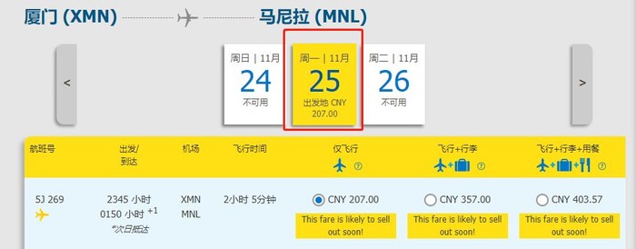 ③ 厦门-马尼拉,单程含税207元,11月底出发