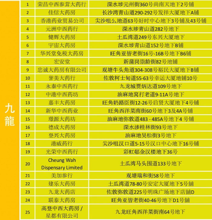 像「药坊」、「药业」、「药店」等这些店铺只有商业登记,只能卖一般药物及中成药。