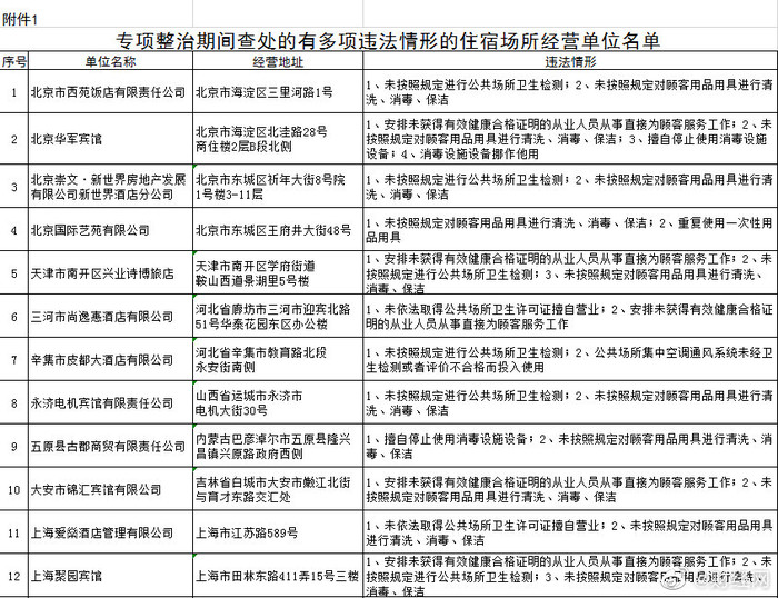 国家卫健委公布卫生不合格酒店名单:格林豪泰、汉庭上榜