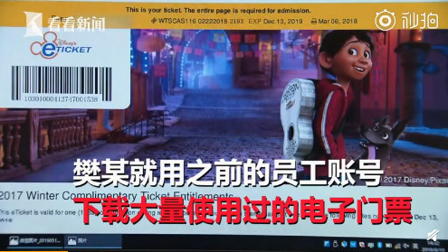 上海迪士尼前员工伪造六千张假门票 非法获利120万