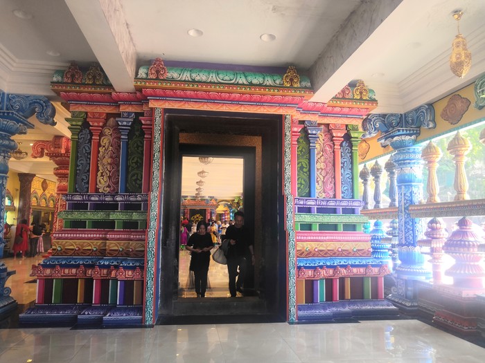 关帝庙对面就是马里安印度庙,同样是需要脱鞋,而且主要把鞋子存到旁边的存鞋处,需要收费的,我和我妈换着进去的,所以咩有存在那边,进去转了一圈就出来了,和在黑风洞看到的差不多,大同小异...