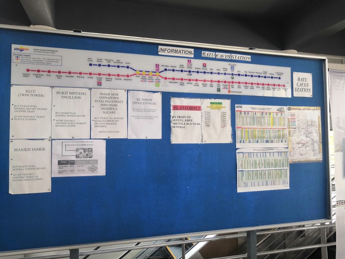 从黑风洞出来后本来想grab,结果一看价格比来的时候高太多,google一下附近的公共交通,偶然间发现了传说中半小时一班的地铁,真的是半小时啊~附上时刻表~